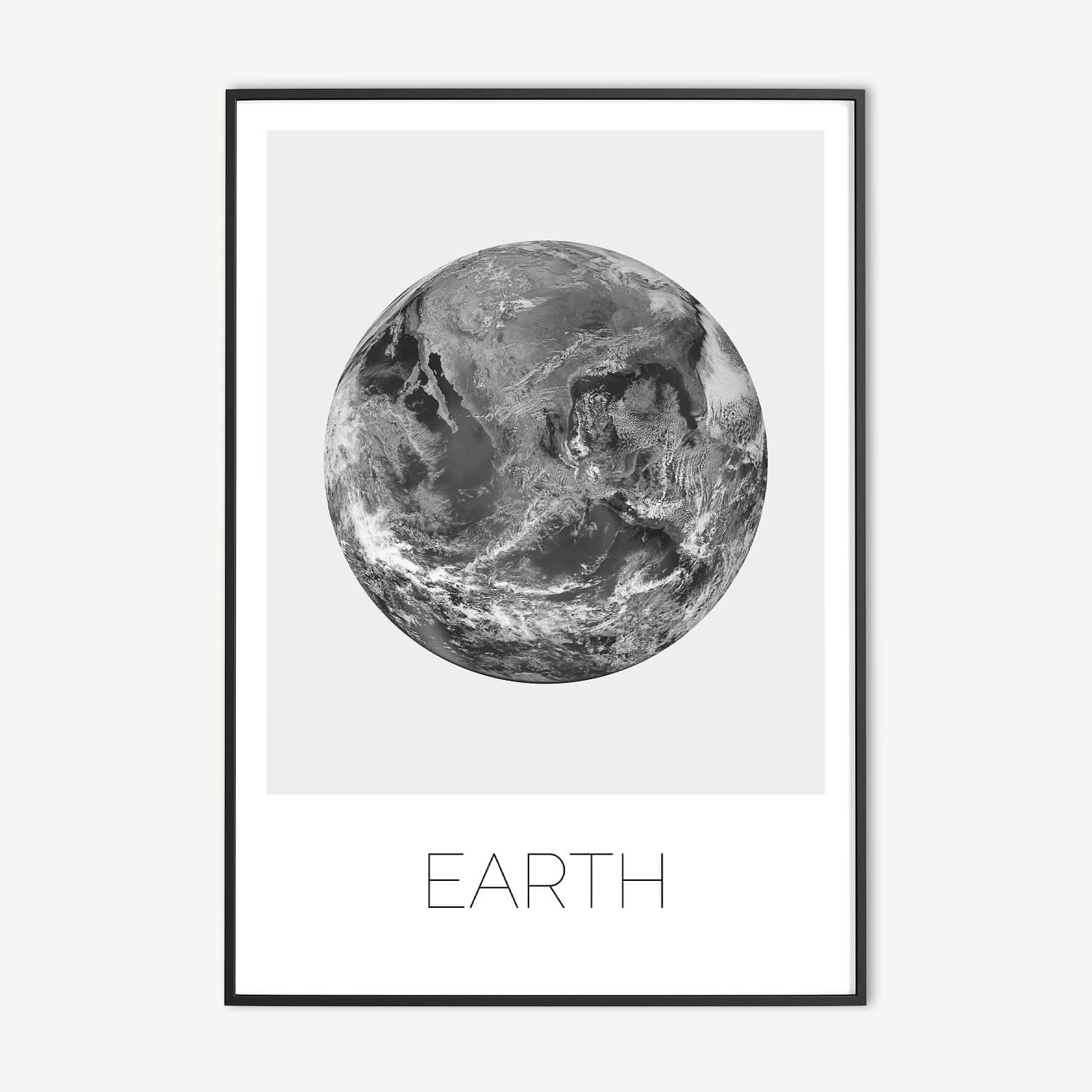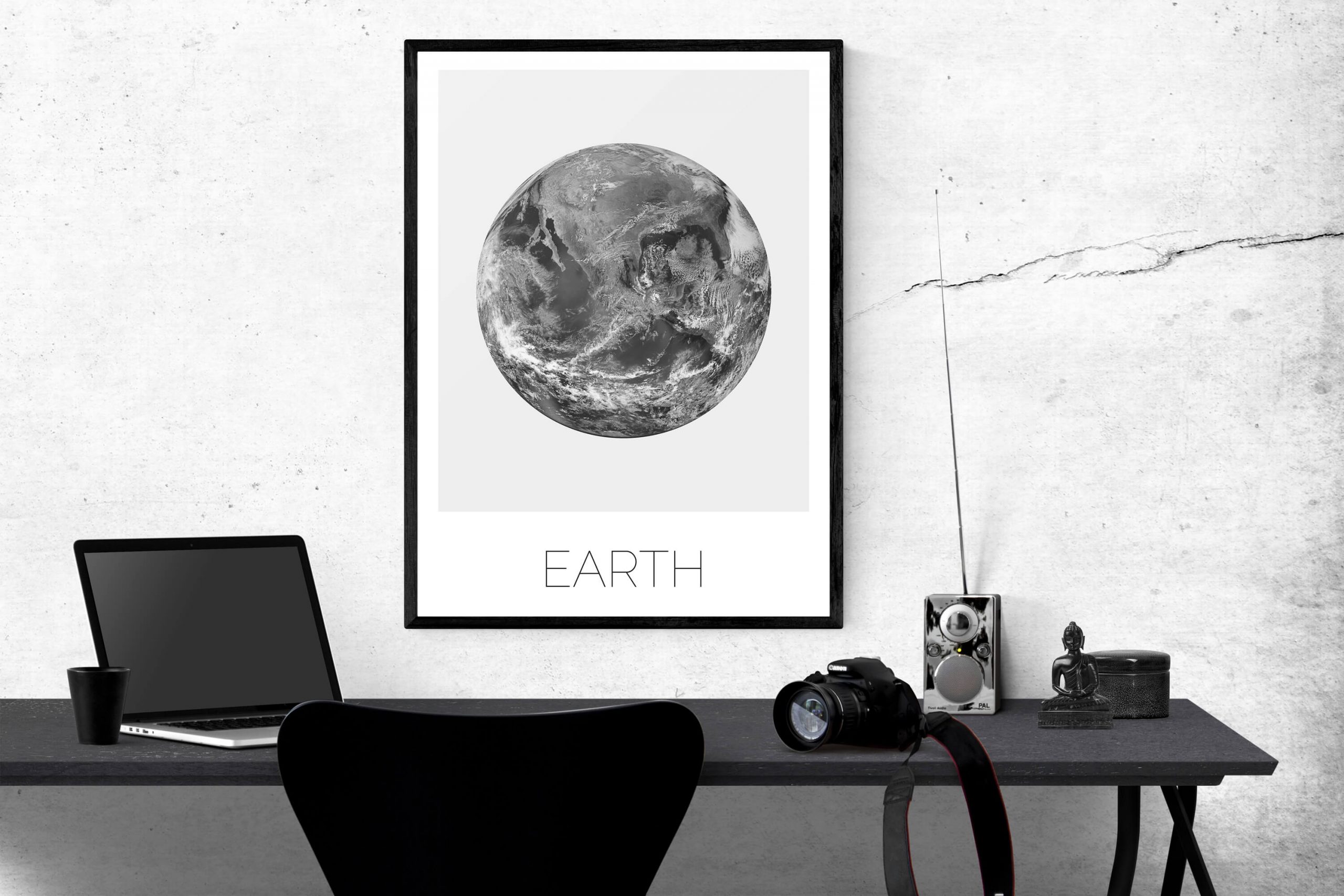 Mooie Aarde poster en canvas print in zwart wit. Een minimalistische poster die past in elk modern interieur. Combineer deze minimalistische Earth print met onze Moon print.