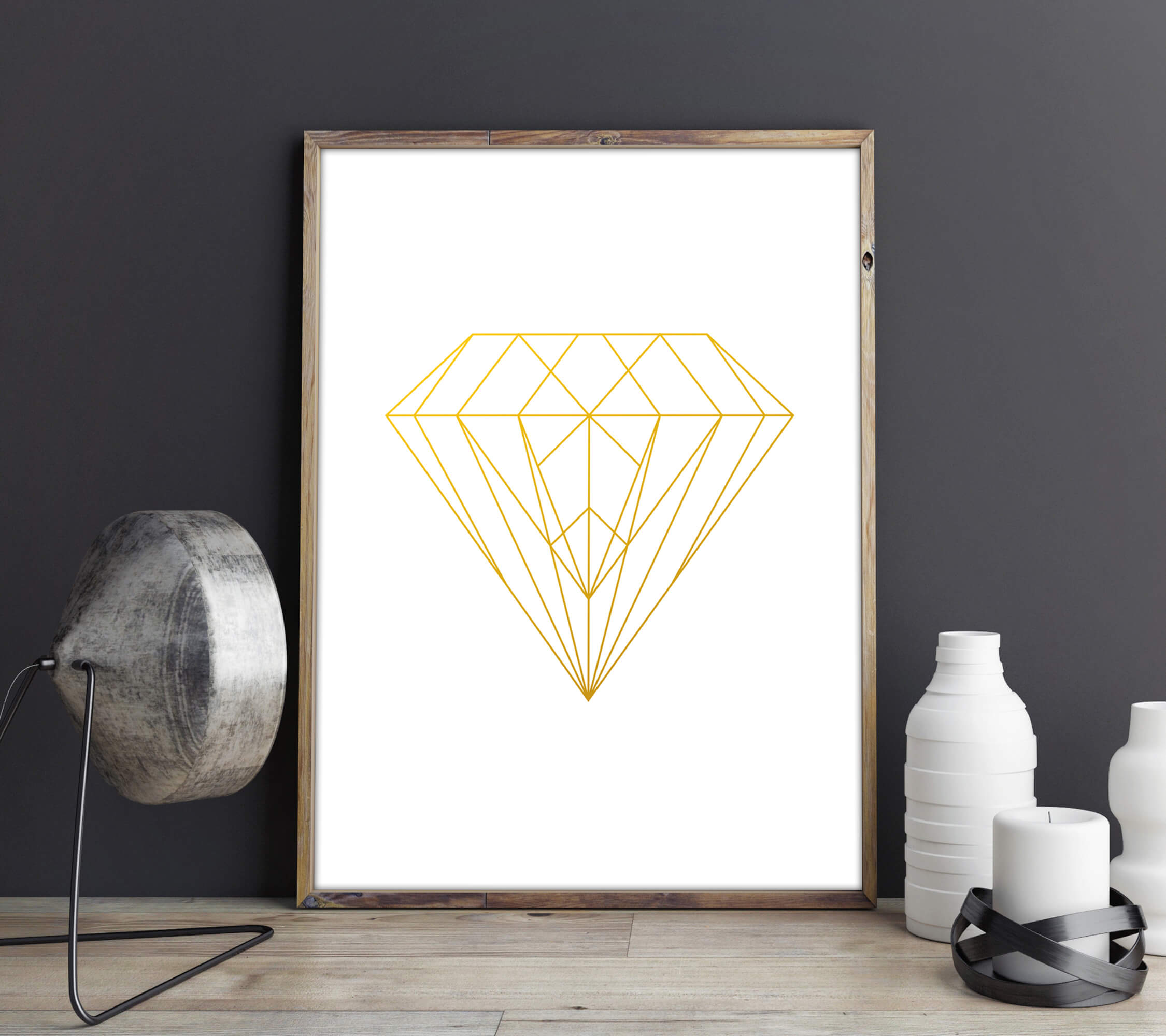 Geometric Diamond is een Scandinavische poster en print met een diamant in geometrische vormen. Past mooi bij alle interieur stijlen. Verkrijgbaar in de kleuren zwart en goud.