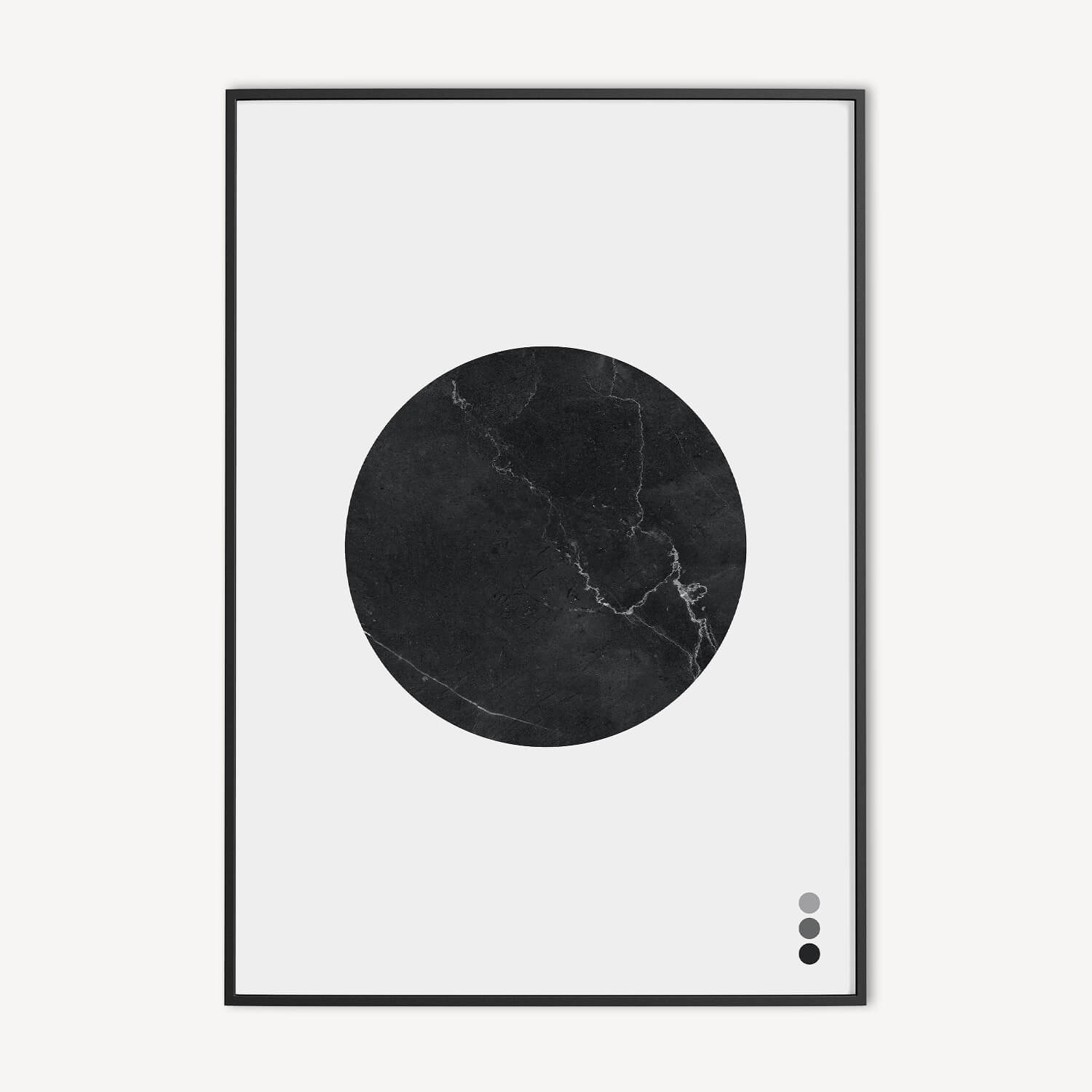 Minimalistische poster set van twee posters in Scandinavische stijl. Minimal Marble heeft een lichte poster en een donkere poster met een cirkel van marmer.