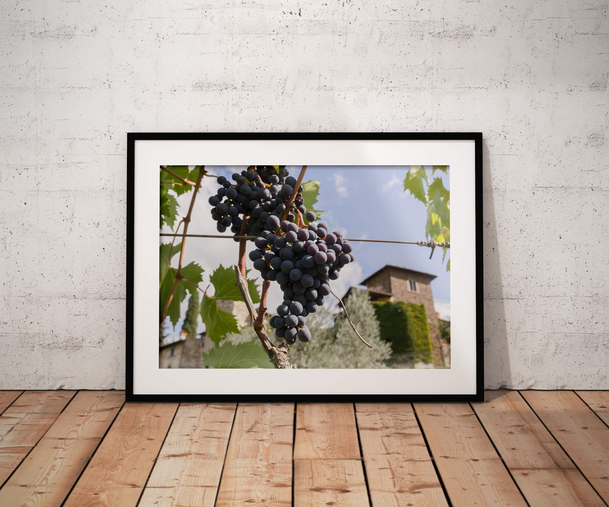 Mooie natuur poster en canvas print met druiven. De foto voor “Tussen de Toscaanse Druiven” is genomen in het Middeleeuwse plaatsje Montefioralle. Dit is overigens niet de enige Toscaanse poster in ons assortiment. Tijden onze trip naar Toscane hebben we namelijk nog veel meer mooie foto’s geschoten. Lees meer hierover meer in onze blog: Op zoek naar de het “echte” Toscane.