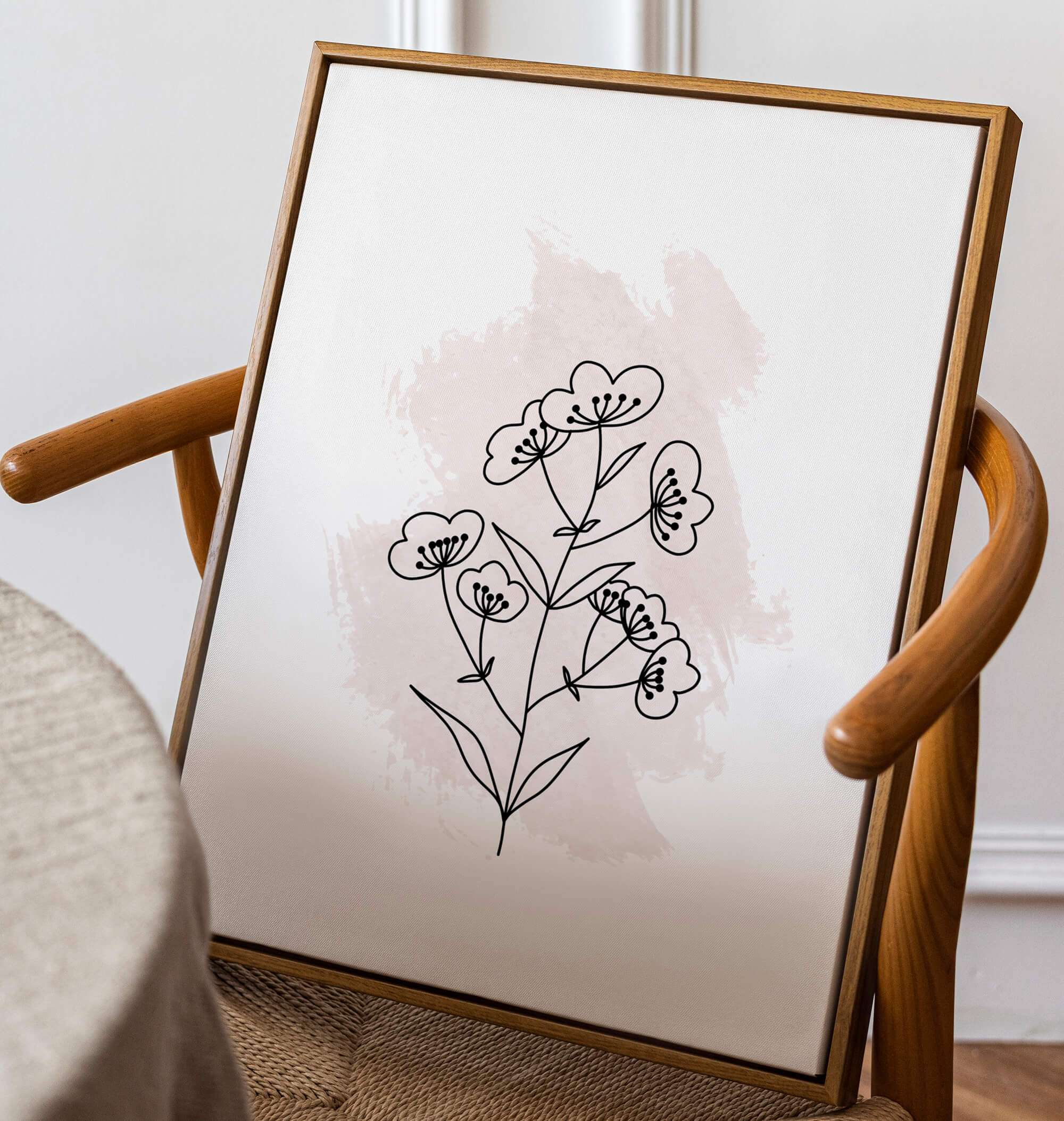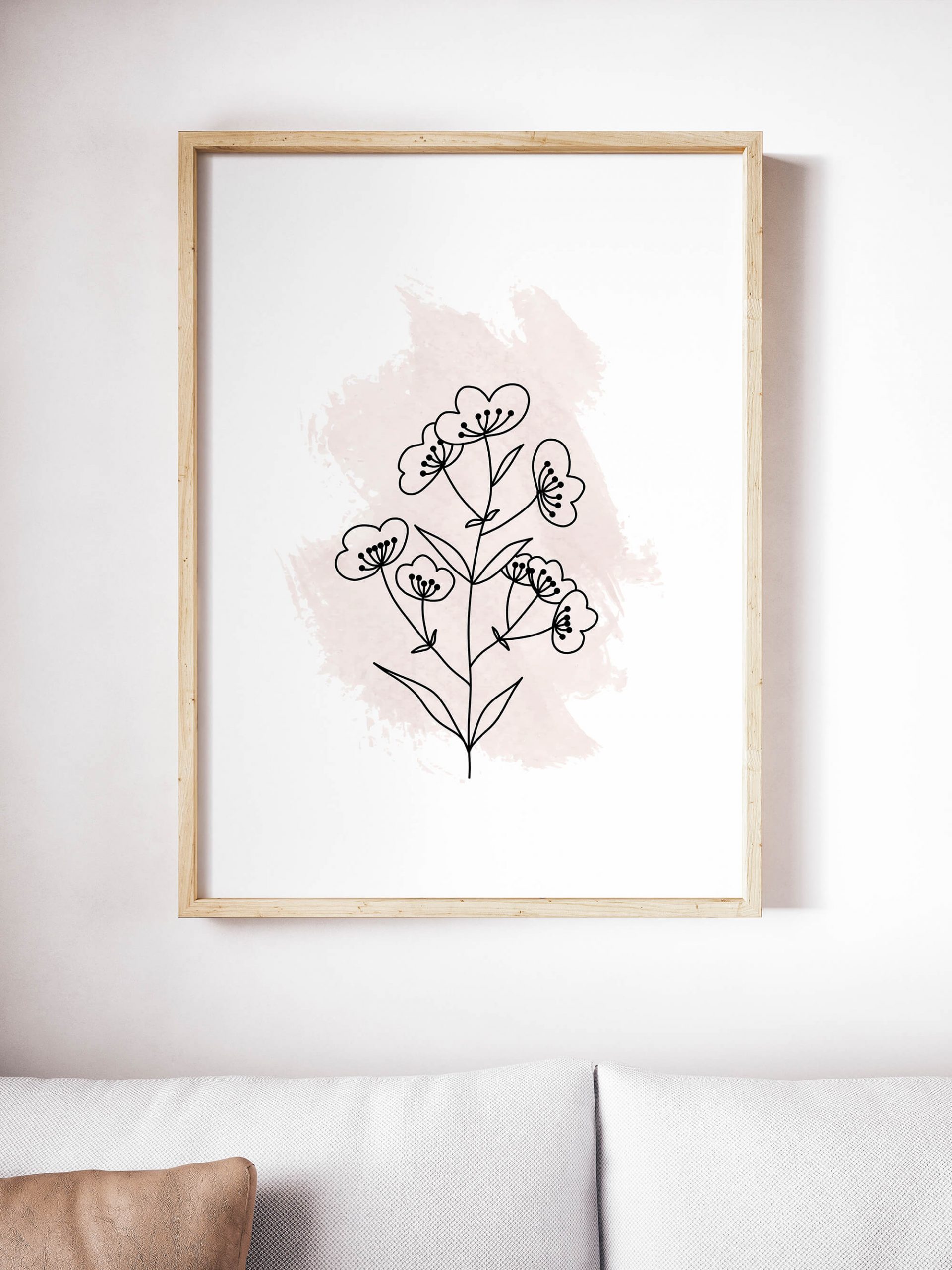 Watercolor Botanical is een botanische print met op de achtergrond een roze waterverf, oftewel watercolour, “vlek” en op de voorgrond een bloem in line art. Deze print heeft een minimalistische, maar toch ook romantische uitstraling. Past bijvoorbeeld ook in een modern interieur, maar ook in een landelijk interieur zou Watercolor Botanical niet misstaan.